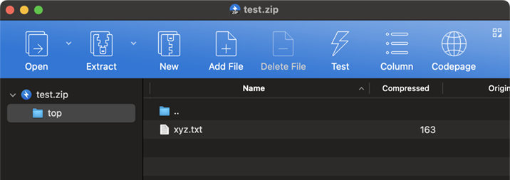 Bandizip c -root:top ~/Documents/test.zip ~/Documents/abc.txt